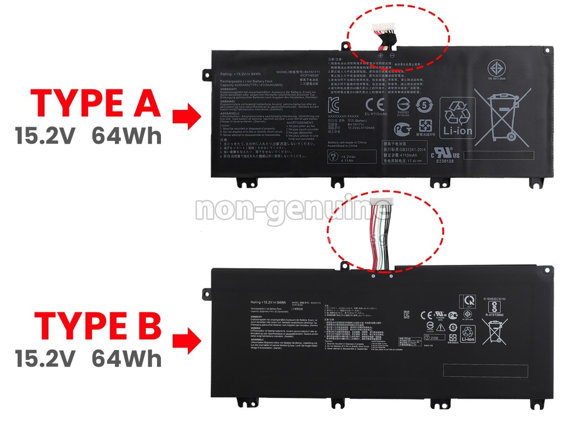 TƯƠNG THÍCH: Asus TUF Gaming FX705 FX705DU FX705DY FX705DT, B41N1711, Gắn dc ROG Strix GL503 GL503V GL503VD GL503VM FX503VM FX63V ZX63V (dư cáp) type B